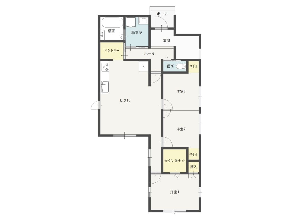 奥にある洋室1部屋は音の影響を受けにくく、趣味の部屋や寝室といった落ち着いたプライベートな用途に最適と使い分けのできる洋室3部屋となっています。
